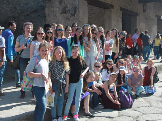 We stayed in Sorrento, on the Amalfi Coast in Southern Italy and from there we visited the Island of Capri, the crater at the top of Mount Vesuvius (which is permanently smoking!) and the amazing ruins of Pompeii. We also performed 3 times, in churches around the area. The 2 concert programmes consisted of all sacred music and also a mixture of sacred and secular music. There were also some solos, duets and instrumental pieces (Caitlin McGinn played the violin and Gabriella Gordon played the flute). The weather was great and everyone really enjoyed themselves. Thanks to Miss Vickery, Miss Davidson, Miss Lambert, Miss Benthall and Miss Stockall who accompanied the trip (and particularly to Miss Davidson who conducted the choir) and to all the girls who behaved very well and sang beautifully!