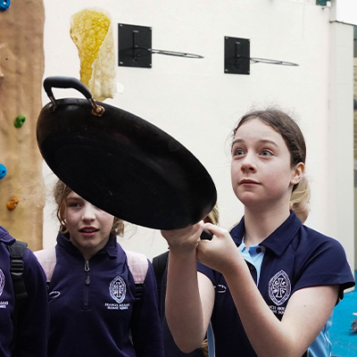 In celebration of Shrove Tuesday, the playground was awash with flying pancakes and excited girls for our House Pancake Flipping  Challenge. The girls had 30 seconds to flip a pancake as many times as they could, and it was wonderful to see the support (and competitive spirit!) of each house to see who would win the challenge. Congratulations to the winners: Franklin!