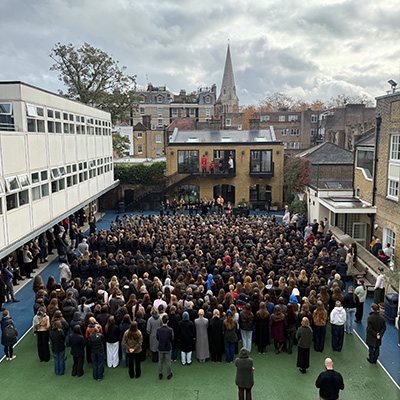On Tuesday morning the Francis Holland Sloane Sqaure community, along with Year 5 and 6 Prep School pupils, came together for our Act of Remembrance – pausing together to remember and thank God for all those who have given their lives for our freedom. Our service, led by Revd van der Hart, was held overlooking the netball court as is our annual tradition.Ā Our staff choir sung Ave Verum Corpus and our brass and woodwind group, which brings together staff and pupils, played Elgar’s Nimrod. Our special thanks go to Chloe in Year 8, who trumpeted the Last Post and the Reveille. We were delighted to be joined again this year by two Chelsea Pensioners, Marjorie Cole and Phil Carr, who delivered a reading from Binyon’s For the Fallen during the service.